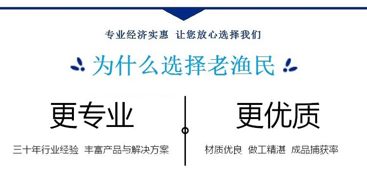 天长市湖泊渔具厂生产的“老渔民”牌湖泊水库捕捞养殖网具,包括地拉网、赶网、拦网、拖网、网簖、地笼。“老渔民”积累数十年渔具制作经验, 产品耐用,捕获率高!天长市湖泊渔具厂经销无结网、有结网、尼龙网、网布、绳线、缆绳、浮子、沉子等渔需渔资。